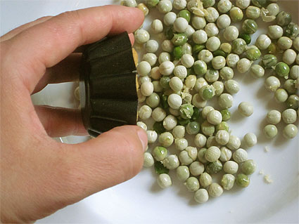 kypsä. Herneet ovat painaneet kuoppia kuppiin